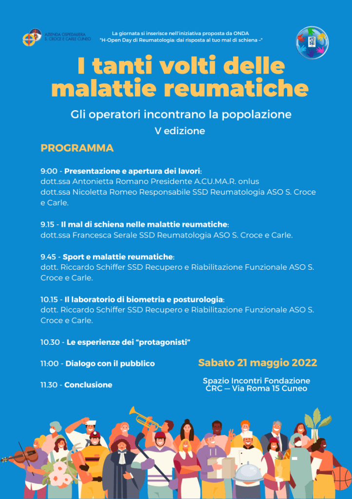 Sabato 21 maggio non prendetevi impegni, perché l’Associazione Cuneese Malati Reumatici ha organizzato per voi una giornata che non dimenticherete, tra divulgazione medica e storie concrete, dal titolo “I tanti volti delle malattie reumatiche”.